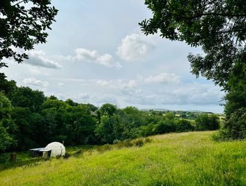 Stay in our Geodosic Eco Dome as opened by Kate Humble herself, hence the name. It has a light an airy feel inside and is larger than it looks at 5.8 meters wide and 4 meters high. Nestled in 3.5 acres of nature, your own secluded private field with a stream running along the boundary, its an idyllic setting for a break away allowing for freedom to roam and relax just you and your family and friends . Carmarthenshire/Pembrokeshire border.